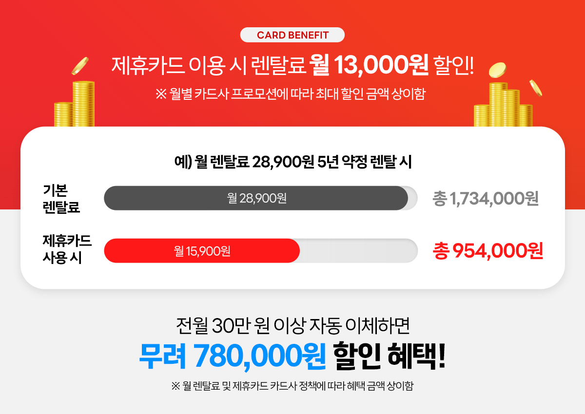 | 전월 실적 | 월 렌탈료 할인 |