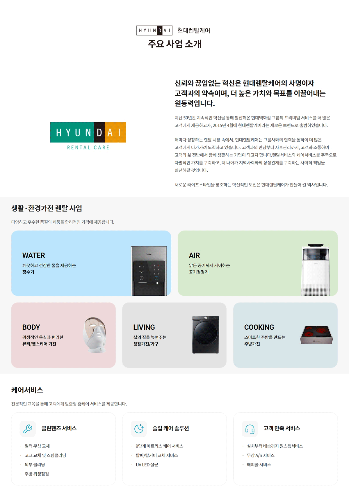 현대렌탈케어 주요 고객사 생활의 현대렌탈케어, 지속적인 품질의 고급화와 기술력 혁신을 통하여 글로벌 기업으로서 비전을 실현해가고 있습니다. 1833-5121 고객님께 가장 알맞은 제품으로친절하게 상담드리겠습니다.